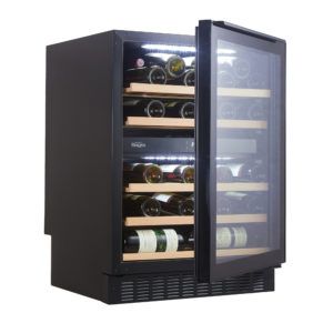 Vinskap med to temperatursoner og en kapasitet for inntil 37 standard bordeaux-flasker.